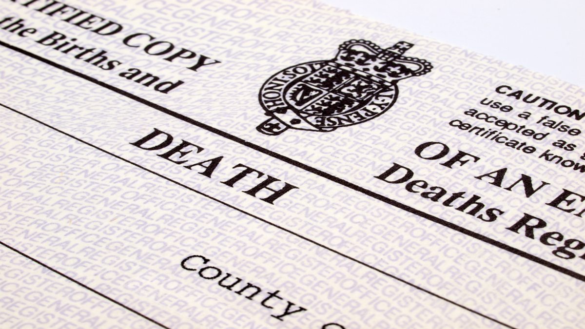 Picture description: UK death certificate