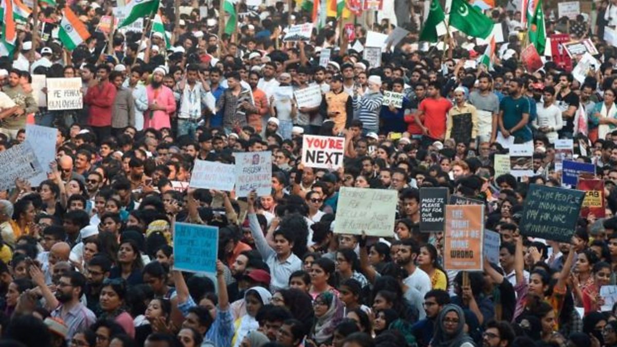 Three people die amid protests against a new law which offers Indian citizenship to non-Muslims. We hear historian Ramchandra Guha's account of being arrested by police whilst protesting, and Anbarasan Ethirajan reports live from the capital New Delhi.