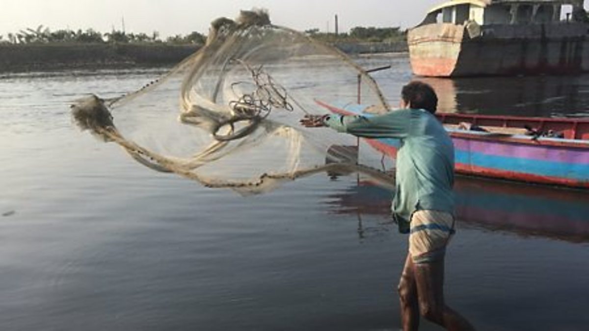 Photo: A fisherman throwing his net into the River Buriganga in Dhaka, Bangladesh. Copyright Salman Saeed/BBC
