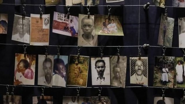 Image: Pictures of victims at the Genocide Memorial in Kigali. Image credit: EPA
