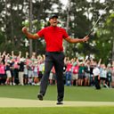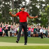 (Image: Tiger Woods celebrates after sinking his putt on the 18th green to win during the final round of the Masters at Augusta National Golf Club in Georgia. Credit: Kevin C. Cox/Getty Images)