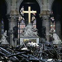 (Picture: The altar surrounded by charred debris inside the Notre-Dame Cathedral in Paris on 16th April 2019. Credit Ludovic Marin/AFP/Getty Images)