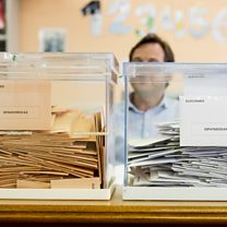 Image: Envelopes with votes lay inside a ballot box at a polling station during the Spanish general election. Credit: Juan Naharro Gimenez/Getty Images.