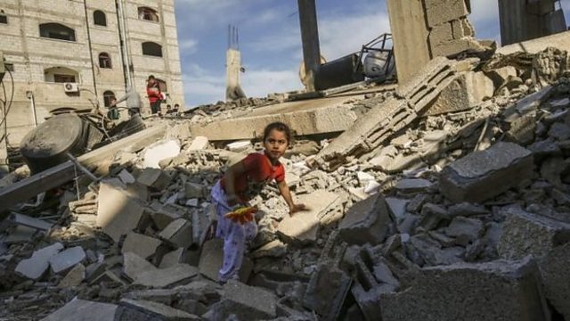 (Two multi-storey buildings were destroyed by Israeli strikes, Palestinians say. Credit: Getty Images)