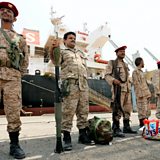 (Photo: Houthi forces during the withdrawal from Saleef port in Hodeidah province; Credit: Reuters)