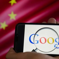 (Image: The Google logo is seen on a Huawei smartphone with China's flag on a laptop monitor. Credit: Omar Marques/SOPA/LightRocket/Getty Images)