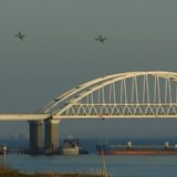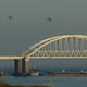(Picture: Russian aircraft flying over the Crimean Bridge that spans the Kerch Strait, a narrow strip that links the Azov and Black seas. Credit: AFP PHOTO / KERCH INFO)