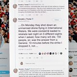 (Photo: A series of tweets written by U.S. President Donald Trump regarding a retaliatory attack on Iran. Credit: Reuters)