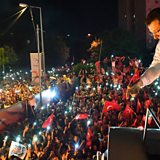 Picture:Ekrem Imamoglu celebrating in front of thousands of supporters at Beylikduzu in Istanbul on June 23, 2019. Credit: Republican People"s Party (CHP) Press Service / AFP.