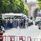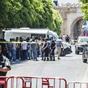 (Photo: Police at the scene after a suicide bombing targeted a police vehicle in in Tunis. Credit: Nacer Talel//Getty Images)