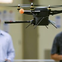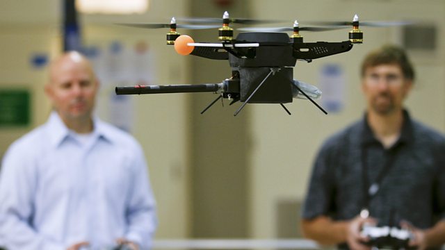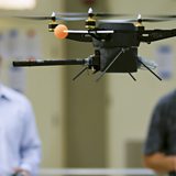 Picture: a prototype quadrotor unmanned aerial vehicle (UAV) in the Unmanned Systems Laboratory at the Naval Postgraduate School in Monterey, California. Credit: Tony Avelar/The Christian Science Monitor/Getty Images.