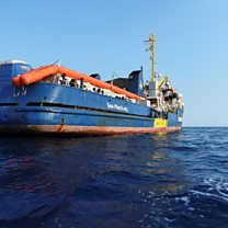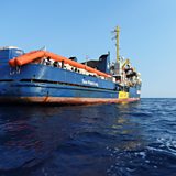 Picture: Sea-Watch 3 rescue ship outside the port of Lampedusa, Italy. Credit: REUTERS/Guglielmo Mangiapane
