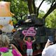 (Photo: A protester poses in front of a tank at the Lincoln Memorial in Washington. Credit: Pike/Getty Images)