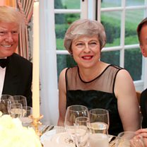 (Photo: US President Donald Trump talks with Britain’s Prime Minister Theresa May and Britain’s Foreign Secretary Jeremy Hunt during a dinner at Winfield House on 4 June 2019. Credit: Chris Jackson/AFP/Getty Images)