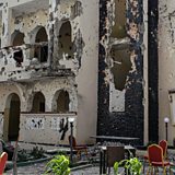 (Picture: A man passes in front of the rubbles of the Medina hotel of Kismayo on July 13, 2019. Credit: Stringer/AFP/Getty Images)