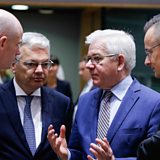 (Picture: Dutch Foreign Minister Stef Blok, Belgian Foreign Affairs Minister Didier Reynders, Polish Foreign Minister Jacek Czaputowicz and Hungarian Foreign Affairs Minister Peter Szijjarto during a Foreign Affairs meeting at the EU headquarters in Brussels Credit: EPA/Oikonomou)