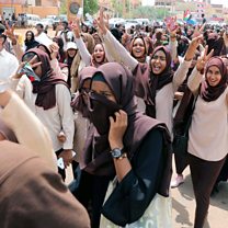 (Photo: Protestors celebrate and flash the victory sign on the streets of Khartoum, Sudan, Credit:Ali Marwan /EPA)