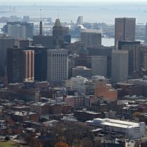 Picture: An aerial view of Baltimore City skyline. Credit: Patrick Smith/Getty Images