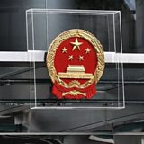 (Photo: Protesters defaced the Chinese national emblem at the liaison office in Hong Kong. Credit: AFP)