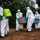 Photo: Health workers dressed in Ebola protective suits carry a coffin in the DRC. (AFP/Getty Images)