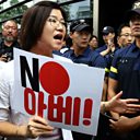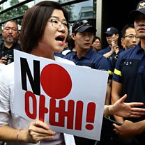 (Image: A South Korean protester holds a placard reading "No Abe (Japanese Prime Minister Shinzo Abe)" during a protest in Seoul against Japan's decision to remove South Korea from a "white list" of favoured export partners. Credit: Photo by Chung Sung-Jun/Getty Images)