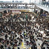 (Photo: Protesters rallying in the terminal of the Hong Kong International Airport, August 9, 2019. Credit: Vernon Yuen/Getty)