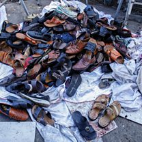 (Photo: The shoes of the victims of the suicide bomb attack lay at the wedding hall after a suicide bomb explosion that targeted a wedding reception in Kabul, Afghanistan on 18 August 2019. At least 63 people, mostly wedding guests from the Shia Muslim community, were killed and more than 180 injured when a suicide bomber attacked a wedding hall in Kabul, Afghanistan. Credit: EPA/Hedayatullah Amid)