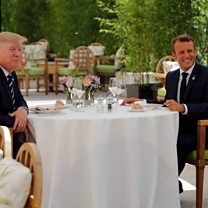 Picture: U.S. President Donald Trump and French President Emmanuel Macron attend a lunch ahead of the G7 summit in Biarritz. Credit: REUTERS.