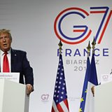 (Photo: President Trump and President Macron attend third day of annual summit on August 26, 2019. Credit: Ludovic Marin / AFP)