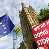 (Photo: Anti-Brexit protesters outside the Houses of Parliament. Credit: PA)