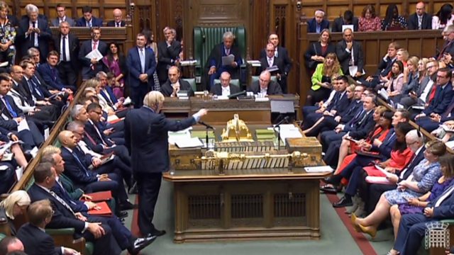 (Picture: British Prime Minister Boris Johnson in the House of Commons in September 2019. Credit: UK Parliamentary Recording Unit handout.)