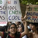 (Picture: Youths hold placards and shout slogans as they participate in a climate strike in New Delhi. Credit: Money Sharma/AFP/Getty Images)