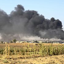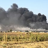 (Photo: Smoke billows from border town of Ras al-Ain on October 12, 2019, during the assault by Turkish forces and Turkish-back rebels on Kurdish-held border towns in northeastern Syria. Credit: AFP/Getty)