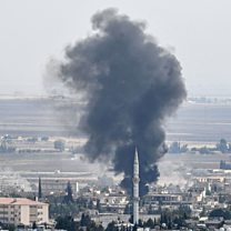 Photo: Smoke rising from the Syrian town of Ras al-Ain on the eighth day of Turkey's military operation against Kurdish forces. Credit: AFP/Getty Images