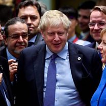 (Photo: Boris Johnson was surrounded by EU leaders after the deal was announced at the Brussels summit. Credit: AFP)