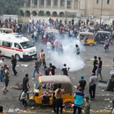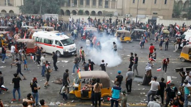 Photo:Demonstrators disperse as Iraqi security forces use tear gas in Baghdad. Credit: Reuters.