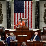 (Picture: Speaker of the House Nancy Pelosi gavels the close of a vote by the U.S. House of Representatives on a resolution formalizing the impeachment inquiry centered on U.S. President Donald Trump. Credit: Win McNamee/Getty Images)