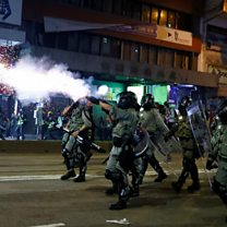 Police in Hong Kong have fired tear gas and water cannon in running battles to try to disperse thousands of pro-democracy activists rioting in the central business district.