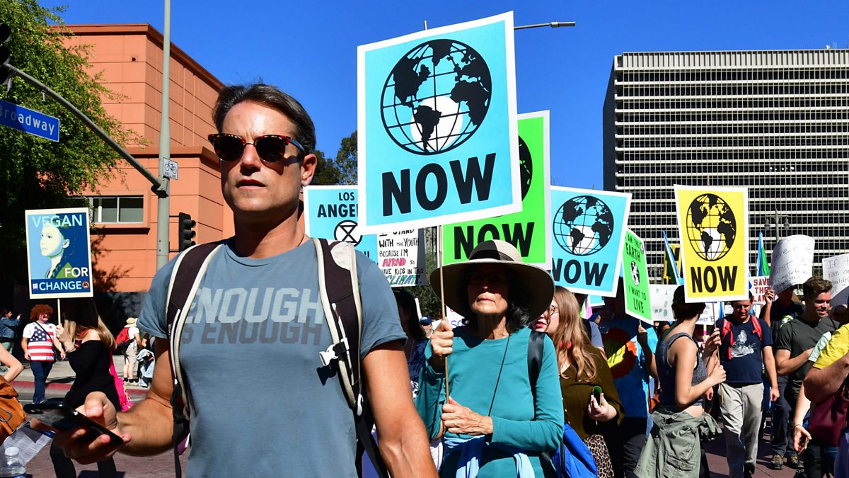 (Photo: Climate activists march through downtown Los Angeles. Credit: EPA)