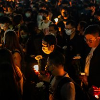 Picture: Hong Kong students hold vigil for Chow Tsz-lok. Credit: Getty Images.