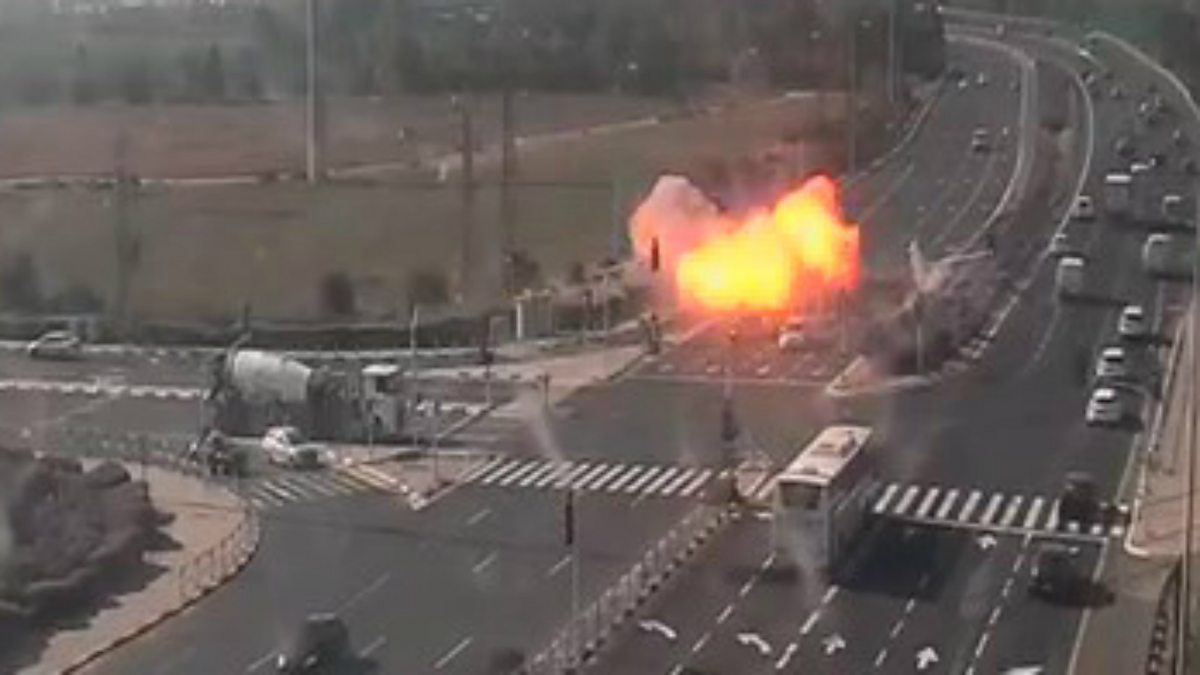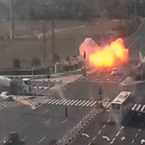 Picture: An image taken from CCTV video made available by Israel's national roads authority showing the moment a rocket, apparently fired from Gaza, struck a road near the city of Ashdod, Israel, 12 November 2019. Credit: EPA / Netivei Israel.