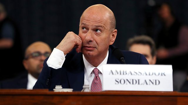 A top US diplomat has told an impeachment inquiry that he followed President Donald Trump's orders to put pressure on Ukraine to investigate his Democratic rival Joe Biden. Ambassador Gordon Sondland said the instruction came from Mr Trump's personal lawyer Rudy Giuliani - we examine the fallout for the Republican party.