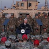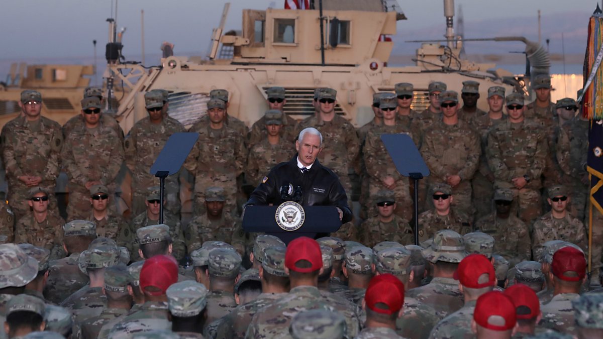(Picture: U.S. Vice President Mike Pence delivers remarks to U.S. troops at a U.S. military facility at Erbil International Airport in Iraq on 23 November 2019. Credit: Reuters/Jonathan Ernst)