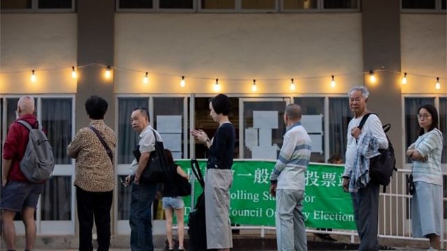 (Photo: People in a queue ready to vote in Hong Kong. Credit: EPA)