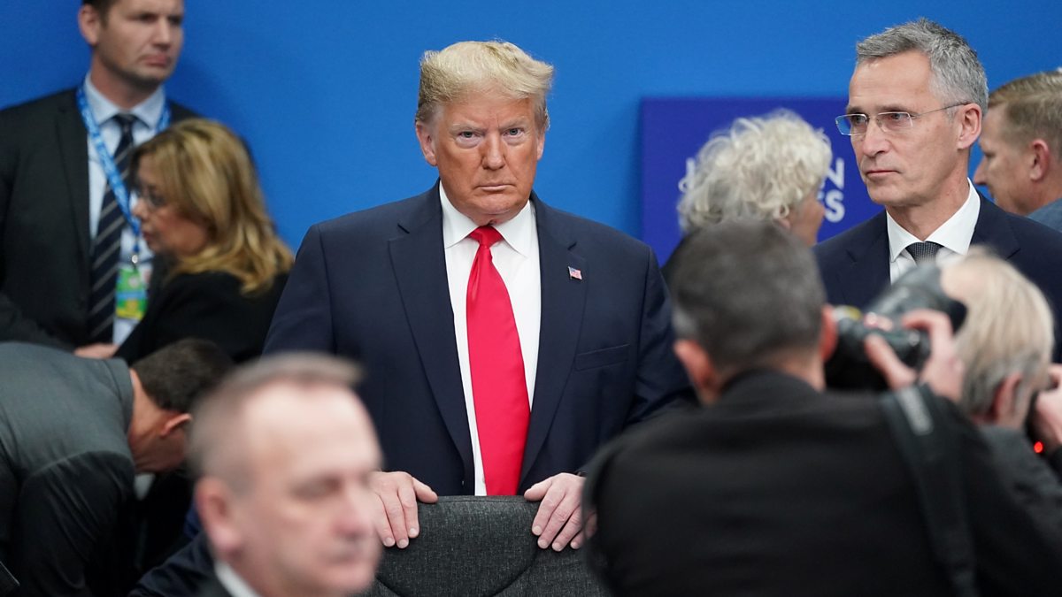 (Photo: US President Donald Trump stands among other world leaders at the NATO summit, near London. Credit: Reuters/Kevin Lamarque)