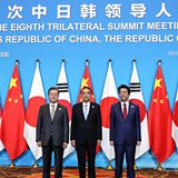 Picture: China's Premier Li Keqiang, Japan's Prime Minister Shinzo Abe and South Korea's President Moon Jae-in pose for pictures ahead of the 8th trilateral leaders' meeting in Chengdu, Sichuan province, China December 24, 2019. Credit: China Daily/REUTERS.