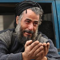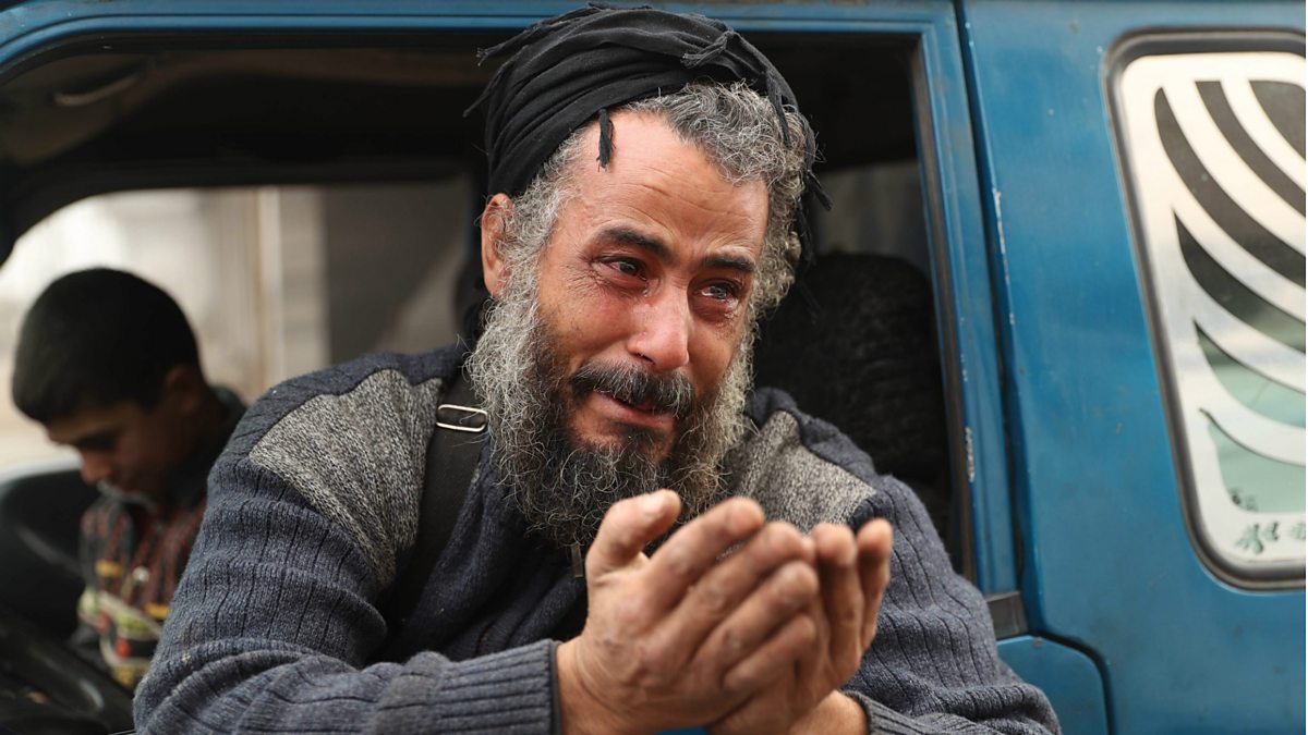 (Photo: Abu Ahmad, one of the last people to flee from Maaret al-Numan in the northwestern Syrian Idlib province, reacts as he rides in a pick-up truck before leaving the town with his family towards a camp for the displaced, on 24 December 2019. - Syrian government forces on December 24 were less than four kilometres (two miles) from the strategic city of Maaret al-Numan, the head of the Britain-based monitor, Rami Abdel Rahman, told AFP. Fearing further advances, thousands of Maaret al-Numan"s residents have fled. Credit: Omar Haj Kadour/AFP via Getty Images)