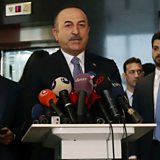 (Image: Turkish Foreign Minister Mevlut Cavusoglu holds a press conference after his meeting with Chairman of the Republican People's Party prior to Turkish parliament session for possible military deployment in Libya, on 30 December 2019. Credit: Adem Altan / AFP)