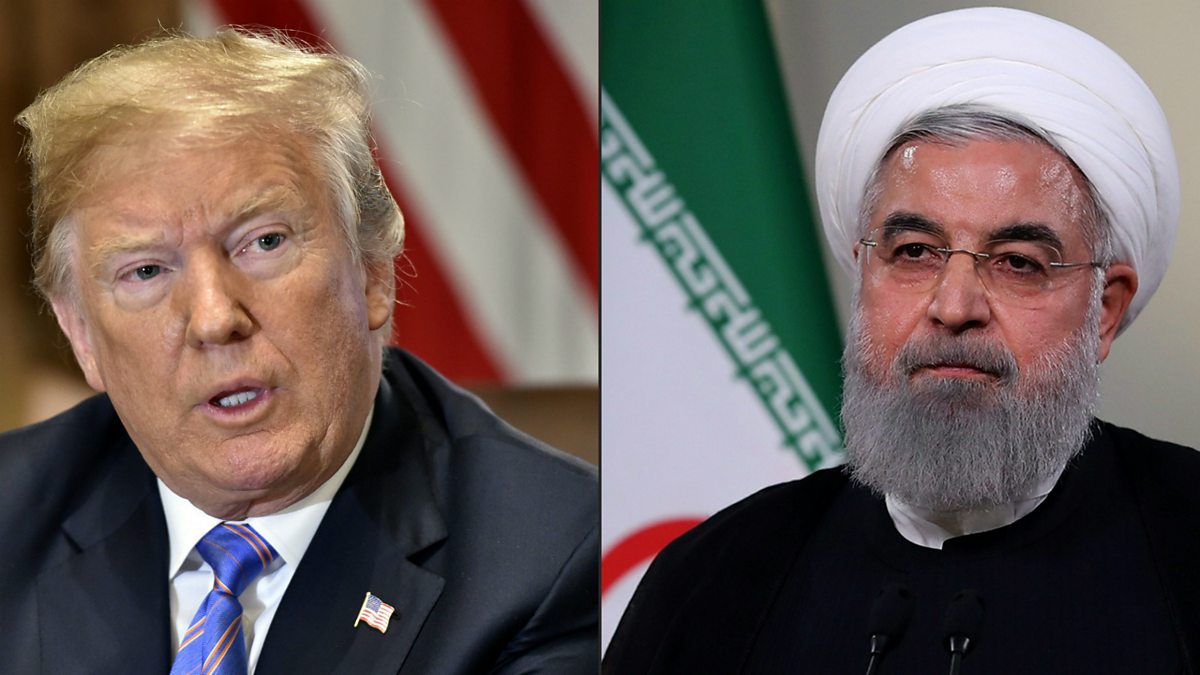 (Picture: US President Donald Trump at the White House in July 2018 & President Hassan Rouhani giving a speech on Iranian TV in Tehran Credit: AFP & Iranian Presidency)