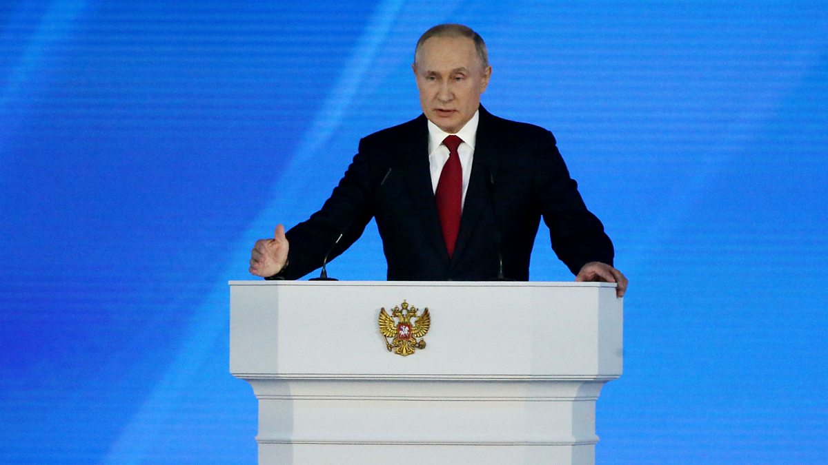 Credit: Russian President Vladimir Putin speaks during his annual speech to the Federal Assembly on January 15, 2020 in Moscow, Russia. (Photo by Mikhail Svetlov/Getty Images)